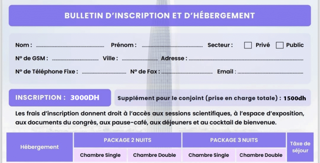 Rabat, ville emblématique du savoir et de l’histoire, offrira à nos échanges un cadre à la fois prestigieux et inspirant. Nous sommes convaincus que ces journées de conférences, ateliers et débats scientifiques renforceront nos liens professionnels et humains, tout en stimulant des initiatives concrètes pour améliorer l’accès à des soins de qualité sur nos territoires.